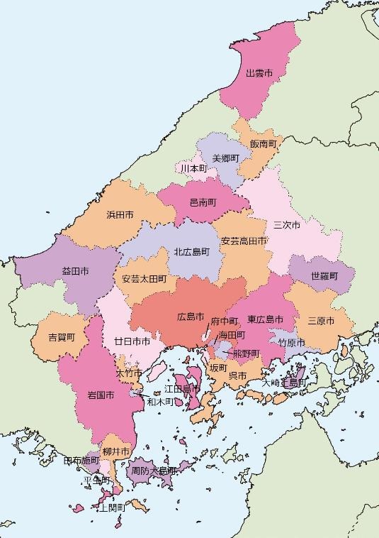 【広島県】広島市(連携中枢都市)、呉市、竹原市、三原市、三次市、大竹市、東広島市、廿日市市、安芸高田市、江田島市、府中町、海田町、熊野町、